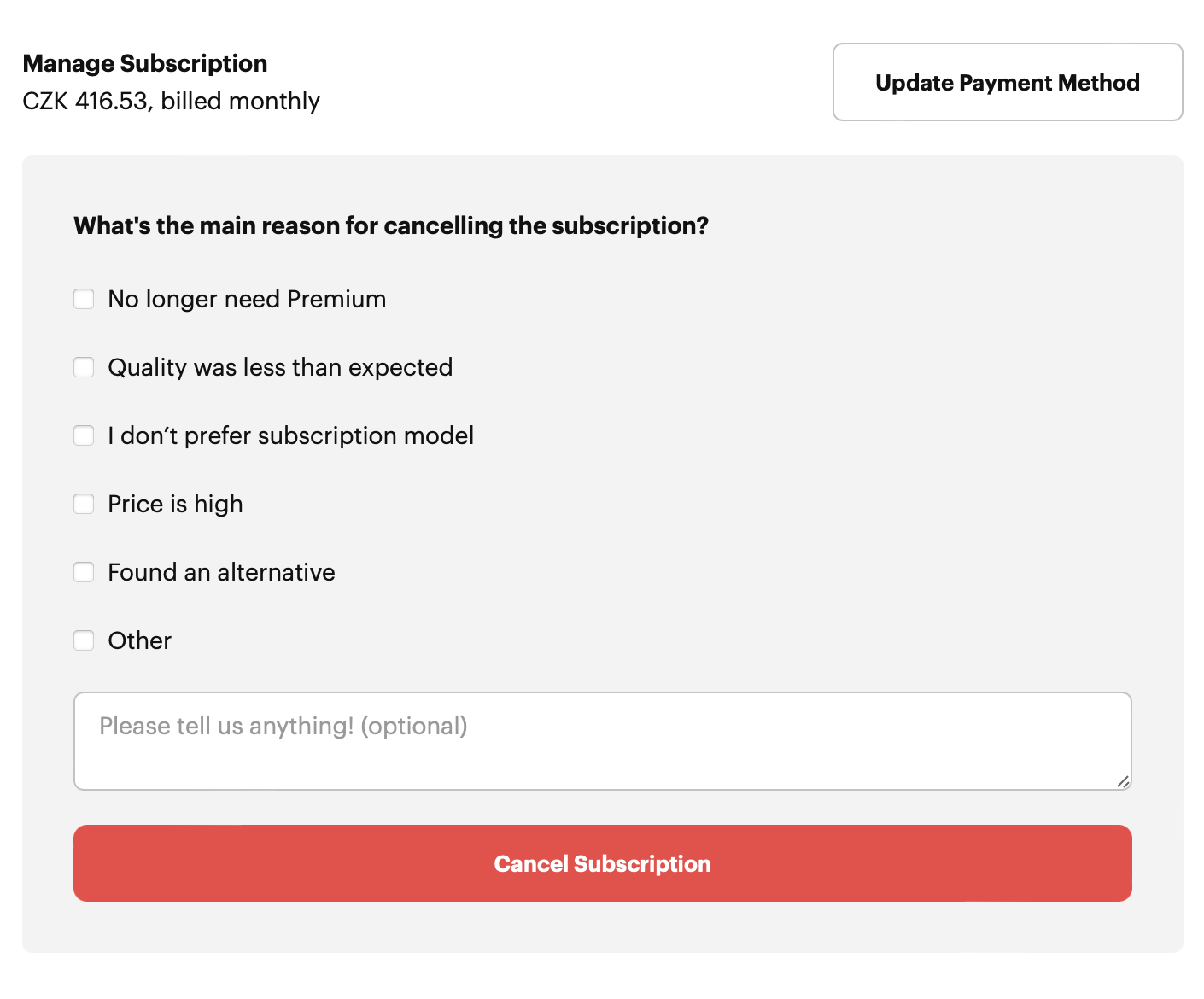 2. You will be redirected to our web. Click on the 'Cancel Subscription' button.