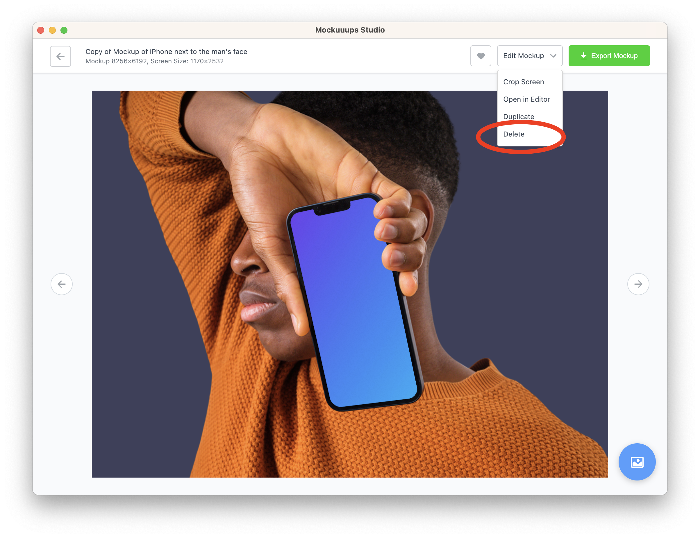 Deleting a mockup is a straightforward process. Start by navigating to the mockup's detail. Look for the 'Edit Mockup' button, you'll find it located in the upper right corner of your screen. Click on this button, and a drop-down menu will appear. From this list, select 'delete'. Confirm that you want to delete the mockup to complete the process.